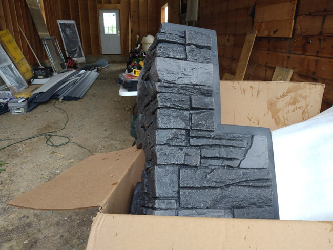 ladders. Where is OSHA? Let's listen to Roxette. Why? The answer is obvious: they rock! Actually last night Kat played a song by them I've never heard and it's catchy so I just found their greatest hits compilation and I'll play some of that before I bivouac soon. So for that garage job is on schedule. I think? If anything I might be ahead of schedule a tad based on the budget. No way it's getting done this year, but I'd like to finish the exterior. The owner emailed me a Genstone color he really liked just after blueberry raking earlier this month. WTF is Genstone? I had no idea, but now I do and then some since I've researched it, watched videos on it, and I installed some already. Here is a corner piece:
