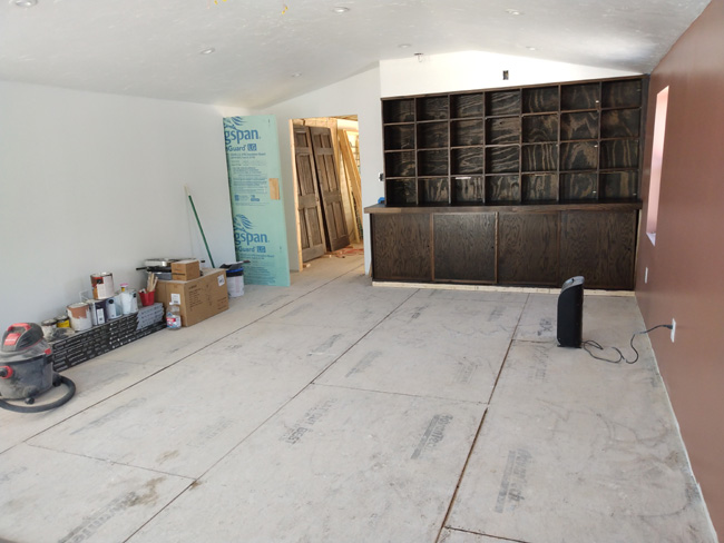 ^New beer cooler! Contractors did repair the roof, but they got cut short due to snow. We didn't get a blizzard, but I bet we got 4-5" overall and it just ended this evening. Plow guy just came a little while ago so bye bye $100 for that. We have a BIG dooryard and a long driveway so that price is totally fine. We split it with Debbie and Dillon so it's really $50 each time for us. I figure if we average 12 plows a year $600 is worth my ass not having to deal with it. I don't really know what the average will be, but I don't think I'm too far off. Including today it's been 6 total plows with winter about half-over so that tracks. We've had several "storms" that have dumped between 3-6" but nothing HUGE yet. I hope when we open Mad Kat next month winter is very close to over, and by later next month that's usually what happens. March snow doesn't last and it melts off the roads REALLY fast. Not only did I help with the beer cooler but I also got the floor done in the front bathroom, I got a huge load of trash to the dump, I got supplies at Lowe's including our new water heater for the place, and we were still home by 1630. Roads were pretty bad for the drive home because of the snow, but I didn't mind going 25-30MPH in a 40MPH zone for most of the drive since I had the trailer on and I wasn't really in a hurry. So for the past 3 nights I've had 2 or 3 drinks, I've updated this bootleg site that almost no one ever reads, I've watched some sports, and I've listened to some 80s tunes. What's wrong with that? NOTHING! I've bivouaced early-ish, and tonight will be no different since I feel tired and it's just now 2200 and taps, taps, lights out. I have the Seahawks vs. 49ers NFL playoff game on. I was watching the Celtics, but that wasn't even a game since they DEMOLISHED Atlanta final score 132-106. The Patriots play at 1500 tomorrow, but I won't watch much of that game due to family stuff. _________________________________________________________________________________________________ I gotta bust out a bunch of stuff at that restaurant this weekend. I haven't done too much there this week because I had to give that huge garage job one final massive push. It was a very productive week at that garage, and the "warm" weather helped. I got stairs in place leading into what will be their office and hangout room, painting in that room is done, bookcase unit is done and half-stained, and most of the recessed lights are installed. Outlets are live, all-good. Via finished the painting Tuesday and did all the cleaning and staining today, and it all looks really good. Homeowner brought his daughter and grandkids up this morning for a tour and it was nice seeing how amazed they all were. Now that they have access from the house they can all see it.