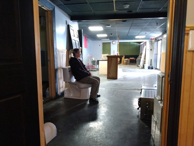^My awesome wife sits atop her throne at Mad Kat. HAHAHAHA! I was in the office, and that toilet goes back into the handicap front-bathroom when I get that put back together. The floor was in really bad shape, but I made fantastic progress on that floor today and I should have it put back together this weekend. Maybe? Hopefully! I should take a day off this weekend as I badly need one, but F that I'll work every day until Kat has her surgery next Friday the 23rd then I'll take some time off to be with her. That photo is epic since she's literally the ruler of that place. It is like a throne just don't try to poop in it hehehe. We had to install grease-traps for two of the sinks because this was the sewer line not long ago: