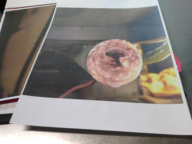 ^OMG DISGUSTING WHAT A BUNCH OF CRAP! It doesn't even look real wow! The city had that photo so they gave me permission to take my own picture of that picture. It's been cleaned since then, but I don't know by how much. The sewer-guy, really cool guy by the way and fellow Navy veteran, was saying a plaza in Wisconsin was totally shut down due to a plugged/broken sewer line so I thought he was implying our plaza was going to be shut down, but he assured me it was not. If the plaza gets shut down we are obviously pwned and that would be epic failer. I don't know how many years' worth of grease that is. We tried to be squared away, Mack's didn't seem very on the ball with that stuff, but who knows it sure looks like more than 8 months of grease and that's how long Mack's was there. I've put more hours into that garage job than I have the restaurant this