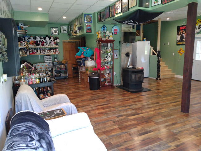 on the house, garage, and restaurant. We had some friends over last Saturday night, and that was a total blast. I had a great time! One of our former employees and close friends was getting married Sunday so it was a very informal pre-marriage party. Not a bachelorette party, just some good friends hanging out. I met a really cool guy who also drinks coffee brandy and milk hahahaha! Adam is around our age and lives in Georgia now, but he came up for the wedding since his "adopted" niece was the one getting married. We stayed up too late and I was a tad hungover Sunday morning. Not horribly-so, but enough to be annoyong. What a bunch of crap! We went to the wedding and that was a very nice ceremony and reception. Even better it was at the event venue just 1.5 miles from the house. 3-minute commute? YES PLEASE. We used to have a 3-minute commute when we lived in Brewer, but I don't miss living there this place is awesome even though it has a lot of flaws and the house isn't even close to done yet. The studio downstairs is mostly done now, and I haven't posted photos from that room in a long time so here are a couple now: