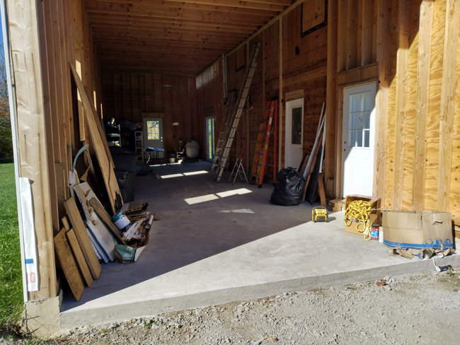9-30-25: Back to work on this huge garage. I'm back in my "normal" routine so far this week. Work on that garage around 5 hours, work on the house a bit, maybe go for a jog, take care of the occasional tax client, talk about the restaurant business. (lots regarding Mack's, the new place that came in where we once were, but that's not for tonight.) Last week contractors poured this floor in the garage, and it looks great: